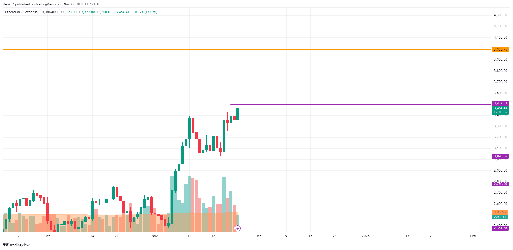 Ethereum is trading at $3,472 at press time.