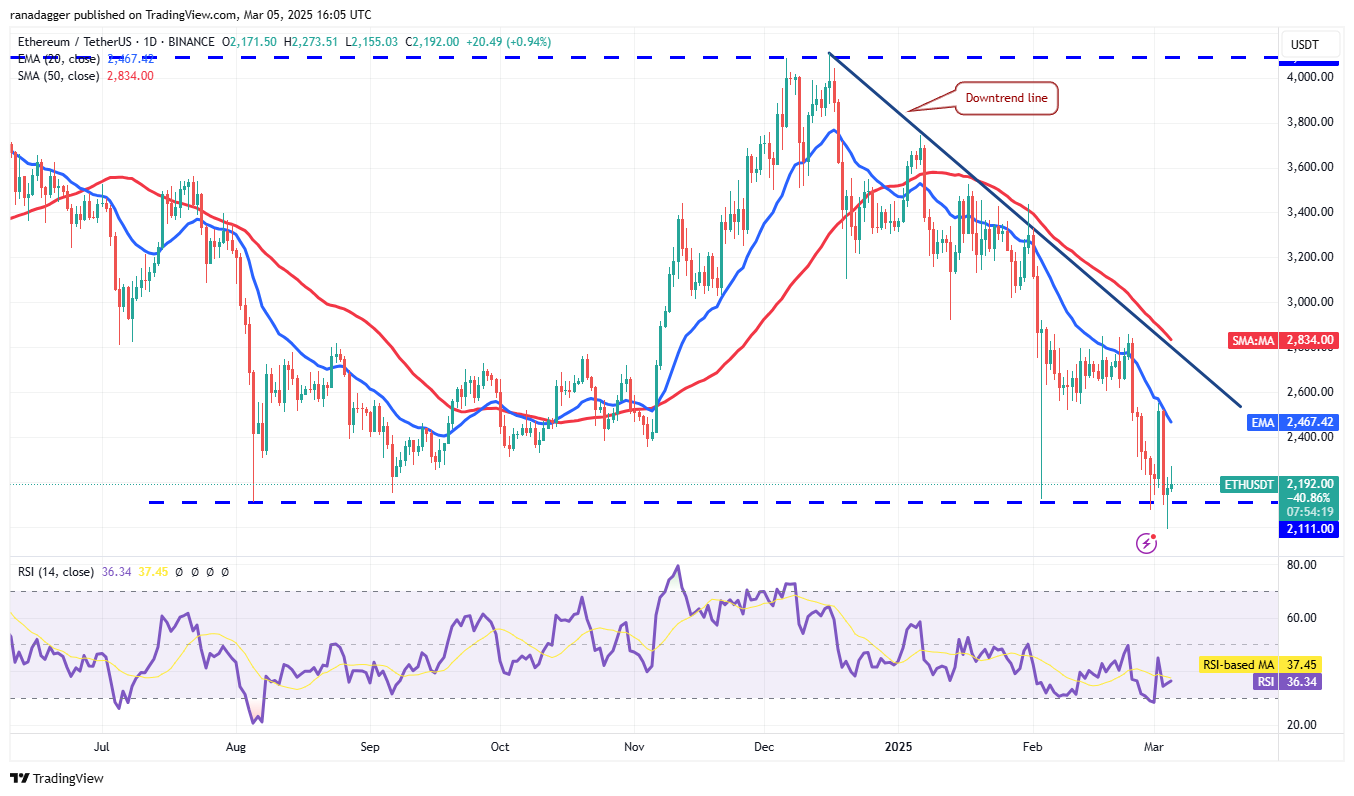 Ether (ETH) nosedived below $2,000 on March 4, but the bulls aggressively purchased at lower levels, as seen from the long tail on the candlestick.