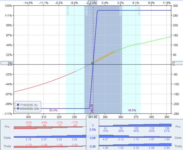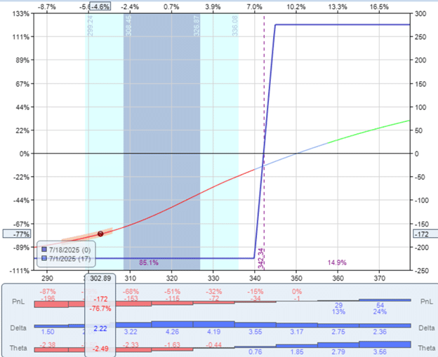 Both options expire on July 18, and the P&L graph at expiration looks like this…