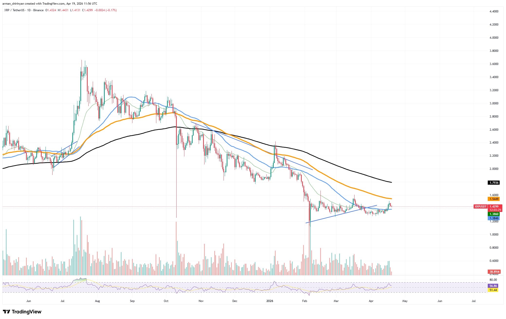 The rounding bottom formation, which appeared promising, could now be invalidated. The entire recovery attempt will restart if XRP begins to lose the higher-low structure around $1.35-$1.38, and the market will probably return to consolidation or even continue the downtrend.