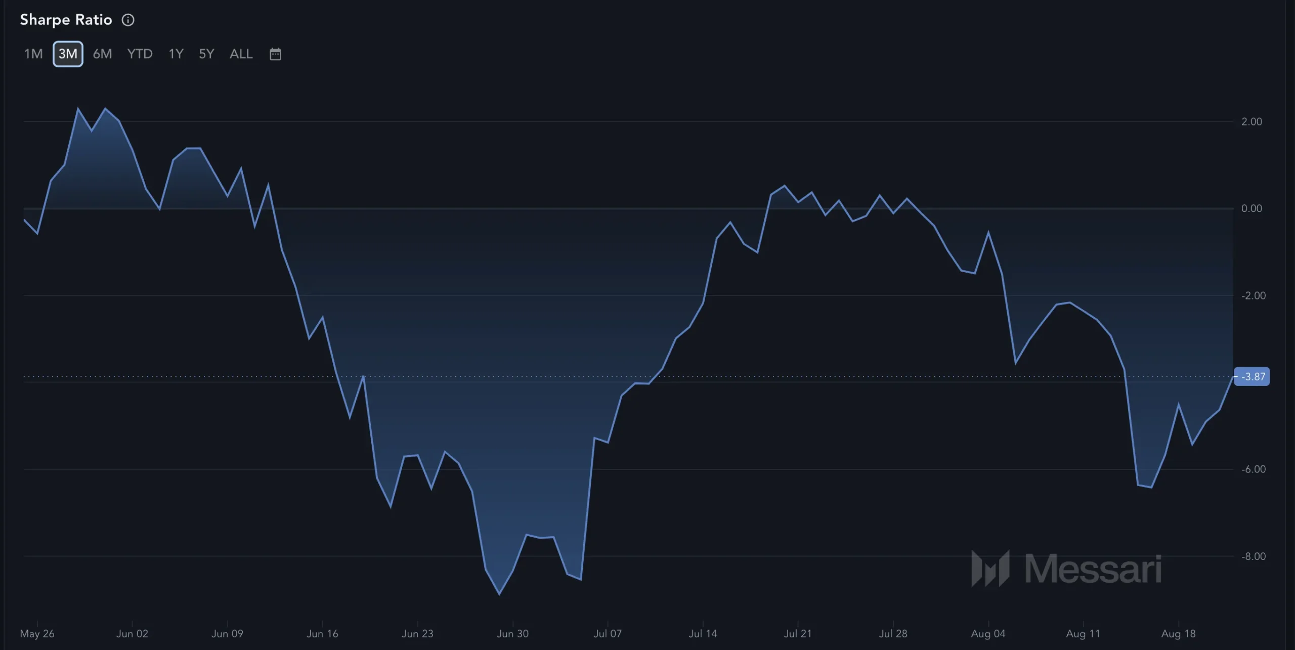 According to Messari, SHIB’s Sharpe ratio was -5.43 on August 19, coinciding with a price drop to $0.000012. Currently, the ratio has improved to -3.87, signaling that SHIB may be on a path to better profitability for investors.