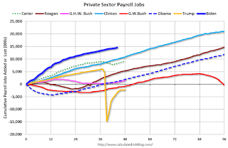 First, here is a table for private sector jobs. The previous top two private sector terms were both under President Clinton.