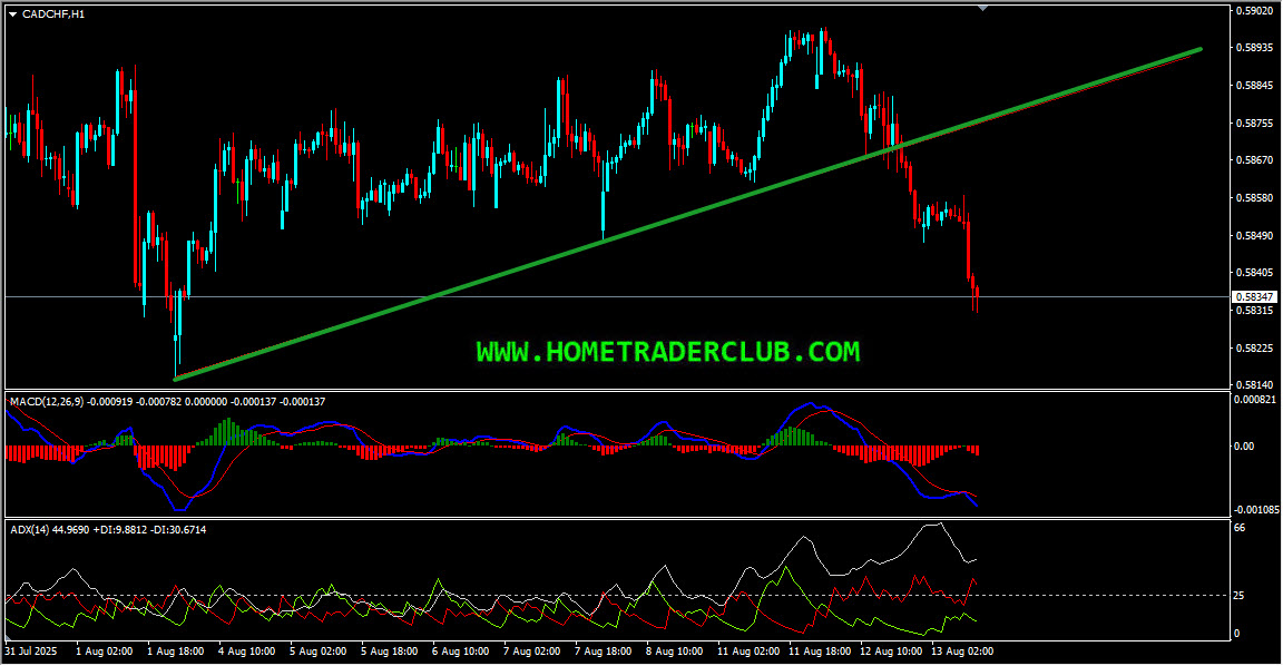 CADCHF H1(1 Hour) Chart Analysis – Uptrend Line Breakout, ADX Indicator