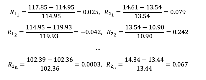 Let us denote their returns by R1 and R2, respectively. Computations of returns are carried out by (1.1.1) and we obtain