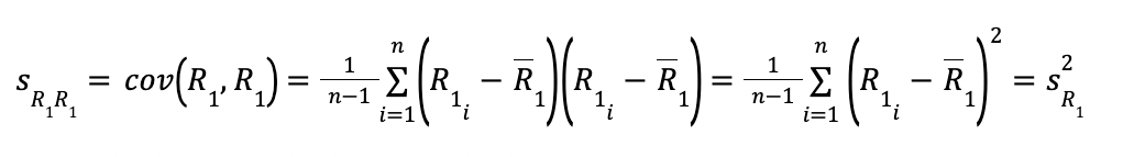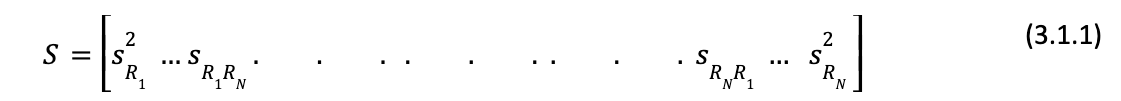 in which the squared terms on the diagonal refer to the variances of each asset returns (i.e. of R1, R2, …, RN). All terms in general are computed by the formula (2.1.1 b).