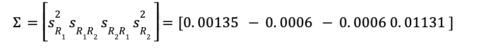 Suppose we put equal weights into the portfolio w = [w1, w2] = [0.5 0.5]. The variance-covariance matrix then is
