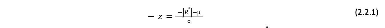 For more convenience, we can write it as -R*. Assuming it is normally distributed, we can associate it with a standard normally distributed random variable computed as