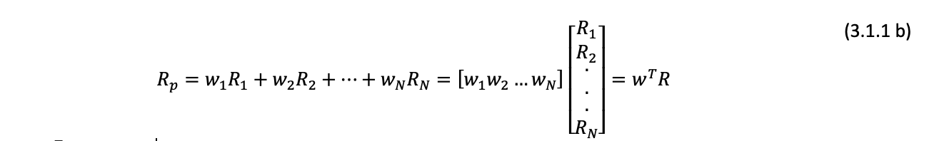 where N denotes the number of assets in the portfolio and Ri is the rate of return corresponding to the ith asset. We can rewrite Rp in (3.1.1 a) by the vector notation: