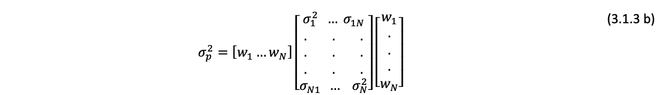 where σij represents the covariance between ith and jth asset returns (i.e. between Ri and Rj). A more convenient way of expressing σp2 in terms of individual asset variances and weights is in matrix form