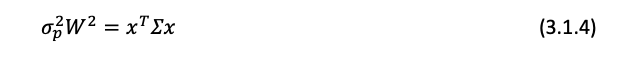 and the variance of the portfolio in terms of dollars by (3.1.4) is computed as shown below