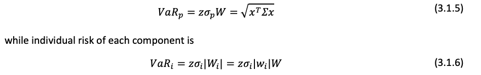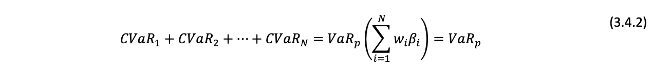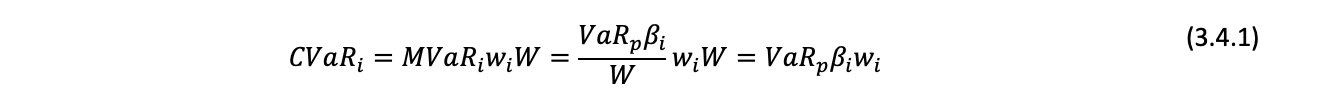 In section 2.2 we covered marginal VaR stating that it measures the contribution of each asset to the existing portfolio risk. Multiplying the marginal VaR by the current dollar position in asset gives a quantity which we call the Component VaR of an asset i.
