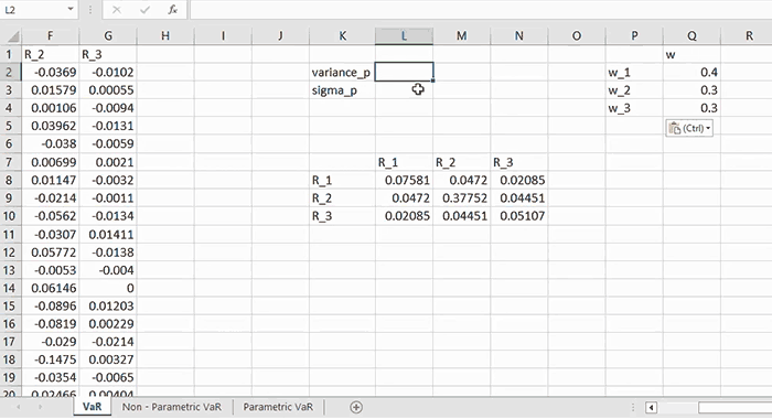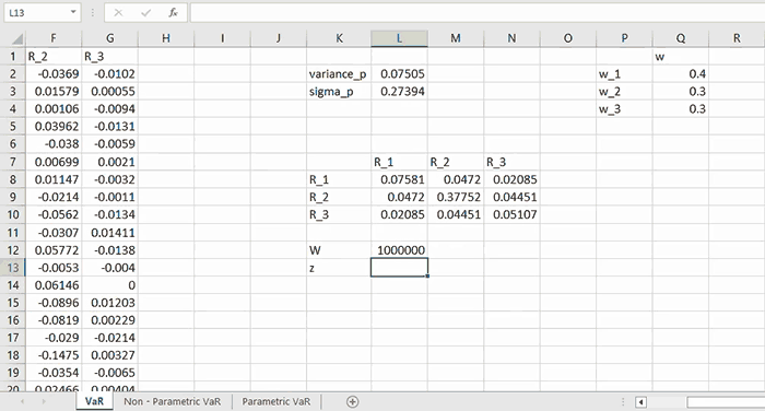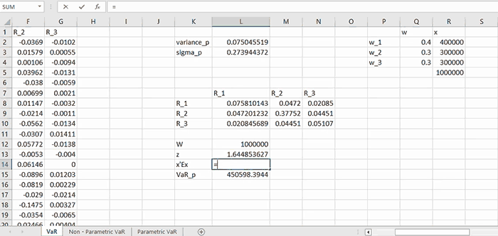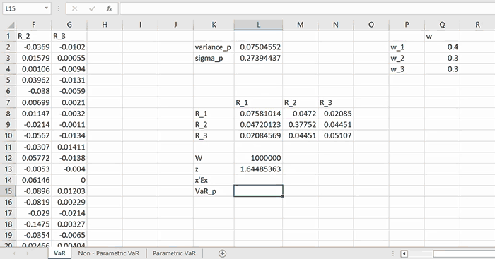 This is the most general method of computation which makes no assumption about the shape of the distribution of returns. Let V0 denote the initial investment and R be the rate of return of a portfolio. R is random. Assuming the position is fixed till the end of the investment horizon, the portfolio value will be: