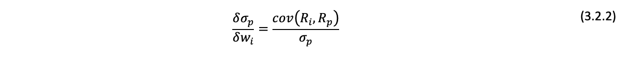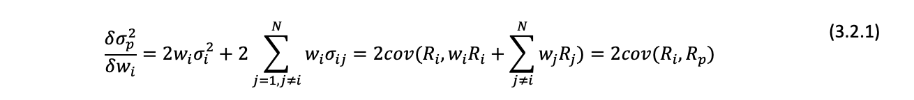 Let us begin by an existing portfolio consisting of N assets. Now we consider adding one unit of an asset i into the portfolio. In order to measure the impact of this trade on overall portfolio risk, we use the tool called Marginal VaR. First, we define the derivative of portfolio variance with respect to the ith asset weight as: