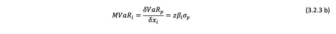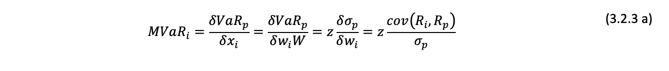 This quantity measures the sensitivity of the portfolio risk with respect to a given asset weight. Converting this expression into a VaR number yields the Marginal VaR for asset i