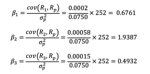 Now we can compute the marginal VaRs for each asset within the portfolio. First, we compute betas by (3.2.4)