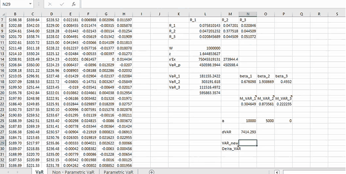 3. Existing VaR consists of individual VaRs. Put another way, $150,000 VaR of a portfolio consisting of three assets, consists of three components. The first component is the contribution of the first asset into this VaR – say $80,000. Same for the second and third components. Let them be $50,000 and $20,000. This tool is named a component VaR and it disassembles the portfolio VaR into individual components.