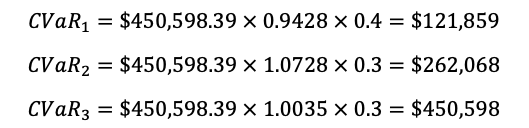 The initial portfolio with $1 000 000 distributed into the positions x=400,000   300,000   300,000 had a VaR of $450,598.39. We can split this amount into the components by (3.4.2)