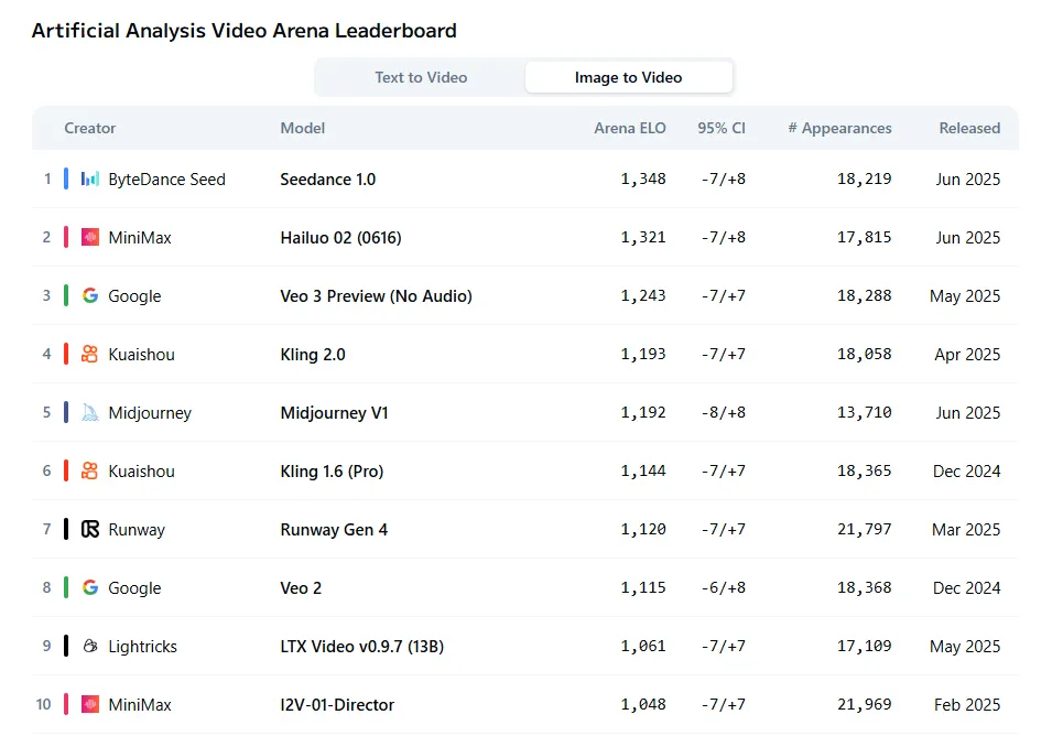 MiniMax didn’t stop at language models during its announcement week. The company also released Hailuo 2, which now ranks as the second-best video generator for image-to-video tasks, according to Artificial Analysis Arena’s subjective evaluations. The model trails only Seedance while outperforming established players like Veo and Kling.
