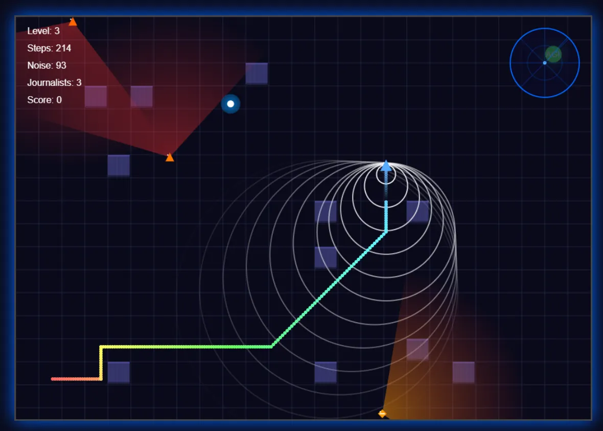 The results were very good, even beating other models by using its creativity to enhance the experience. The model implemented a radar system for improved immersion, added visual indicators for footsteps (and their sound), showed the journalists’ vision fields, and created trail effects—details that enhanced gameplay beyond basic requirements.