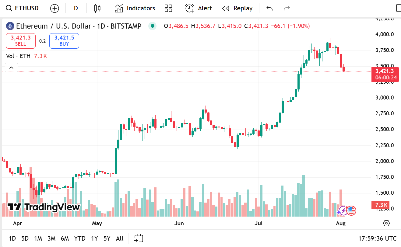 Ethereum price dropped to $3,499.86, losing 4.05%, and XRP dropped to $2.92, losing 2.39%.