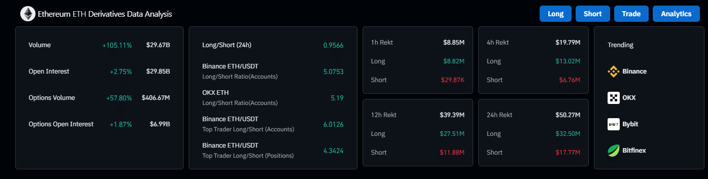 Additionally, futures markets are buzzing, with derivative volume soaring by 105% and Open Interest (OI) climbing by 2%.