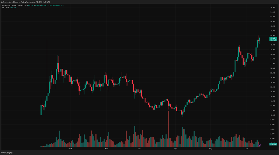 At press time, the 10,000 HYPE are worth over $420,000 and represent the biggest stake by a publicly traded company in this DeFi platform. Launched in late 2024, Hyperliquid has gained a lot of attention within the crypto space due to its bullish price action; HYPE rose from $1 to around $42 in less than a year.