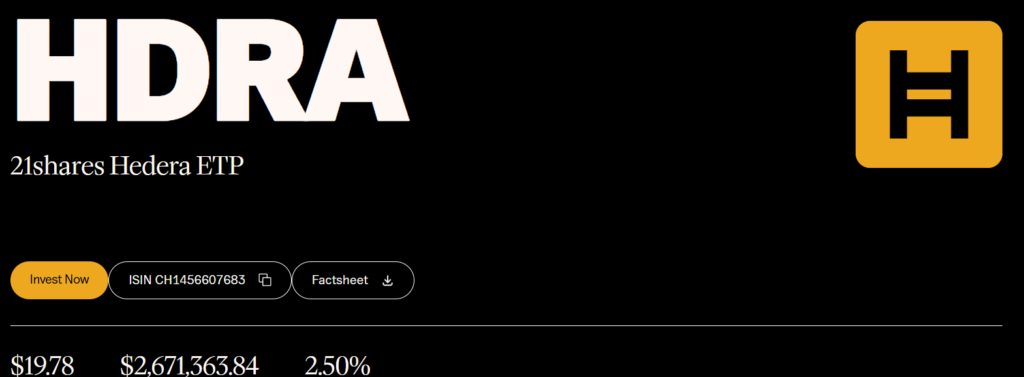 In Europe, 21Shares’ HDRA Hedera spot ETP has gained attention from institutions. The ETP is now also available in the UK after new FCA rules.