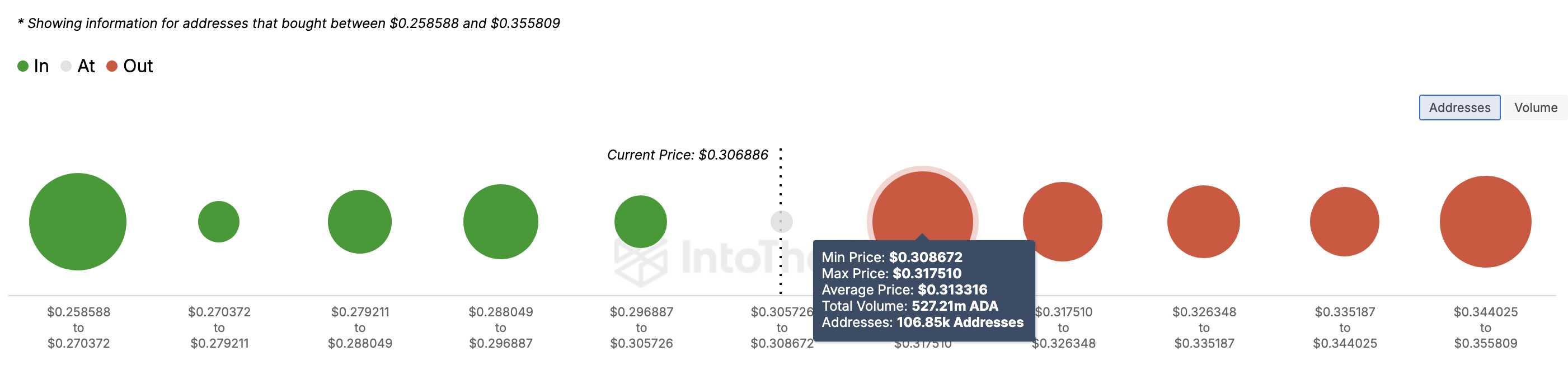 According to IntoTheBlock, the total number of addresses in profits and purchased ADA between $0.28 and $0.30 are not up to the addresses lying in losses at $0.31.