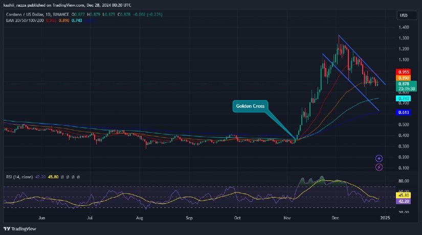 Cardano’s current consolidation phase reflects market maturity. The Golden Cross formation signals a solid technical base for future growth. Moreover, strong on-chain metrics indicate investor confidence remains intact. Support levels near $0.80 and resistance at $1.50 are critical thresholds to watch for ADA’s near-term path.