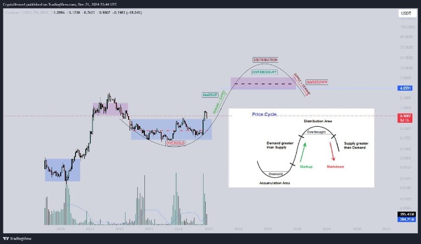Market experts are upbeat about Cardano’s trajectory as 2025 approaches. Crypto analyst Yesreel’s predictions suggest ADA could reach $4 soon, depending on market developments and platform advancements. Some analysts even predict prices ranging from $5 to $16, possibly on the successful impulse correction formation.