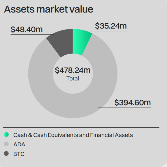 The nonprofit foundation supporting the Cardano ecosystem, the Cardano Foundation, has revealed in a recent report that as of Dec.31, 2023, it held $478.24 million in assets, with 82.5% of those being held in ADA, 10.1% in BTC, and the rest in cash and cash equivalents.