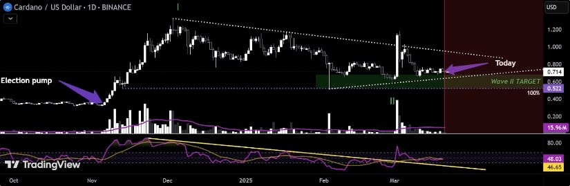 Cardano may face short-term pressure if buyers fail to hold $0.60, but historical patterns and RSI trends suggest a breakout could be on the horizon. Source: Caramel0 on TradingView