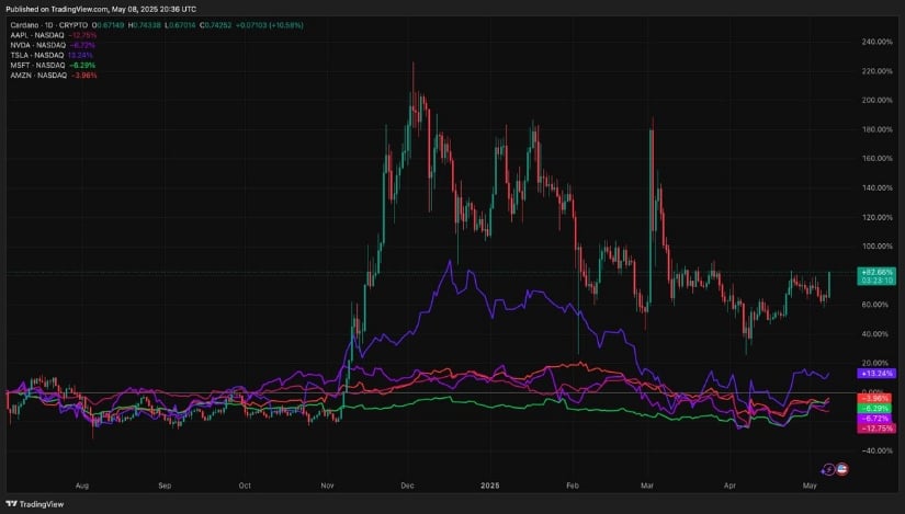 Cardano’s ADA has outperformed major tech giants over the past 300 days. Source: TapTools via X
