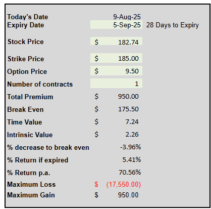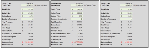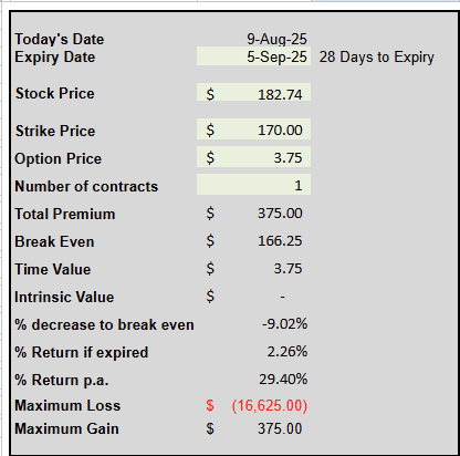 For this example, suppose the investor sells the $170 put option that expires on September 5th, 2025.