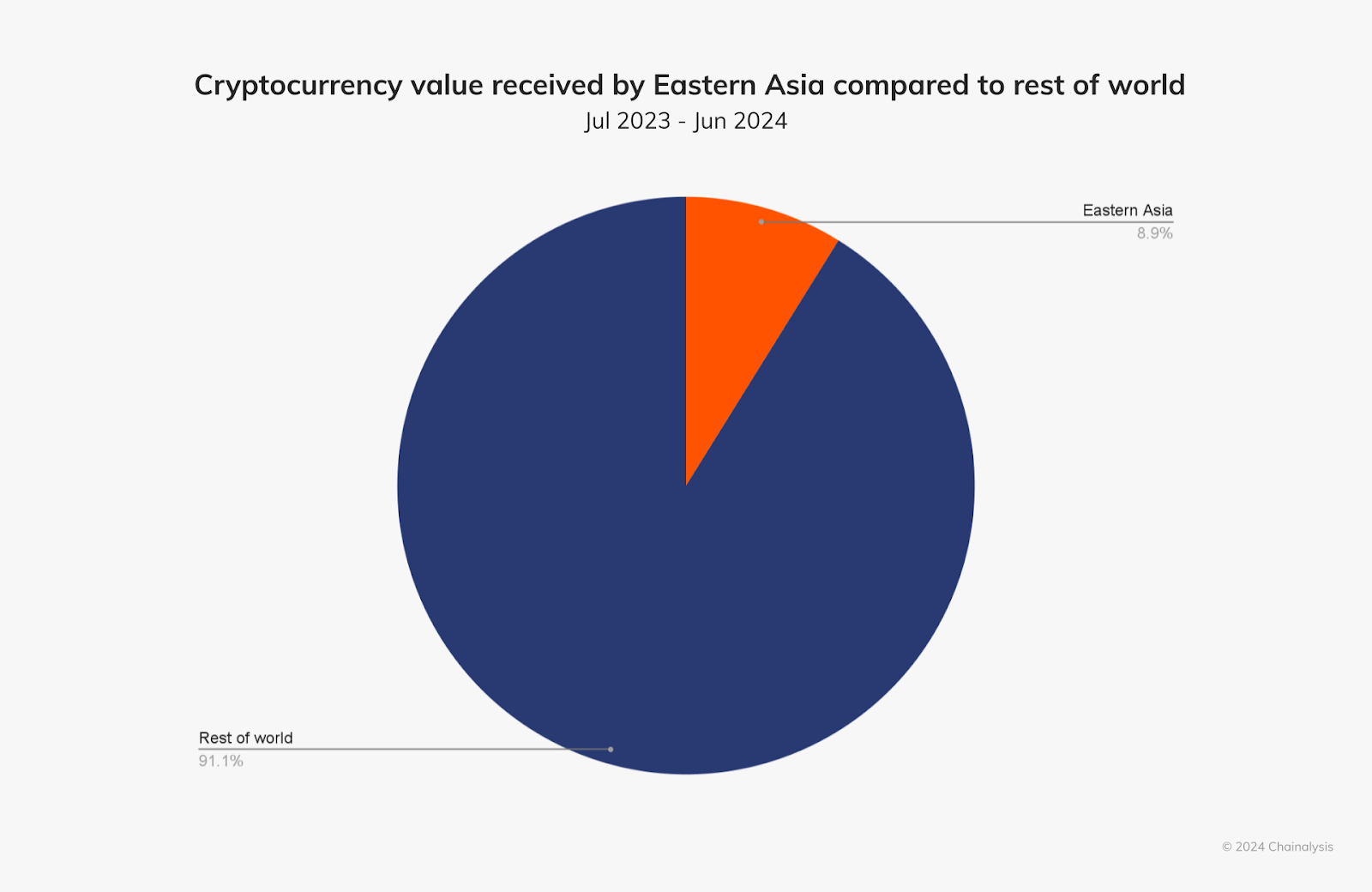 - Eastern Asia has become the sixth largest crypto economy globally, driven mainly by institutional trading in South Korea and Hong Kong, with over US$400B in on-chain value from July 2023 to June 2024.