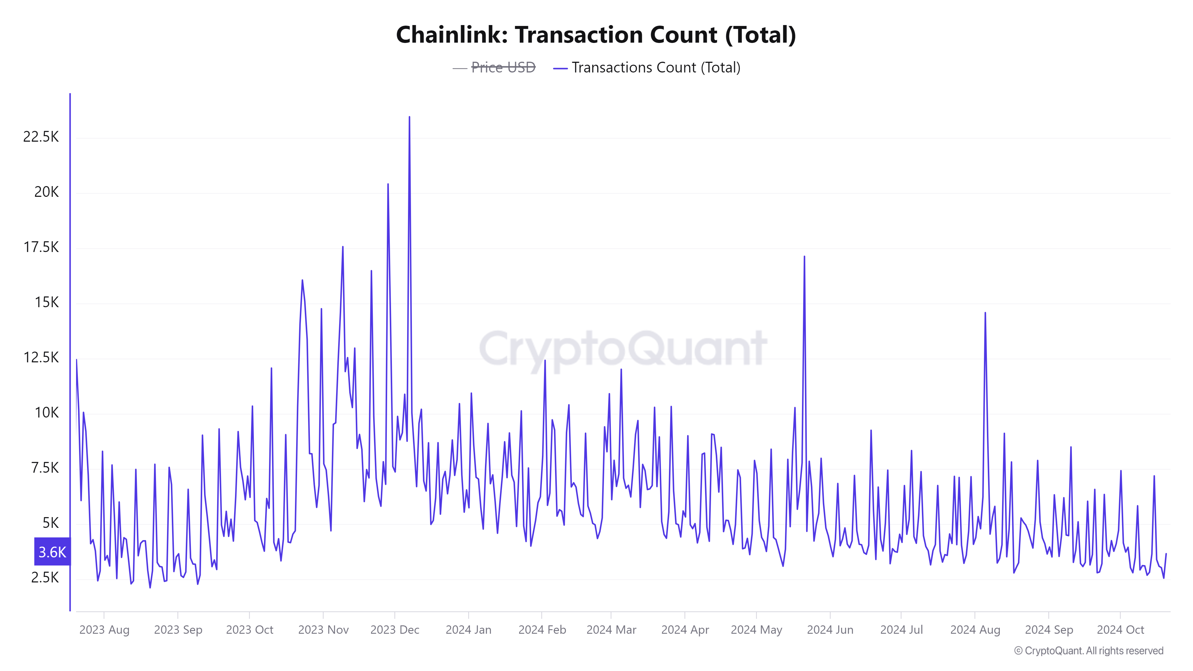 Network activity continues to rise. LINK’s active addresses climbed by 1.34% in the last 24 hours according to CryptoQuant. Furthermore, transaction counts have grown by 1.51%, now totaling 3.82k.