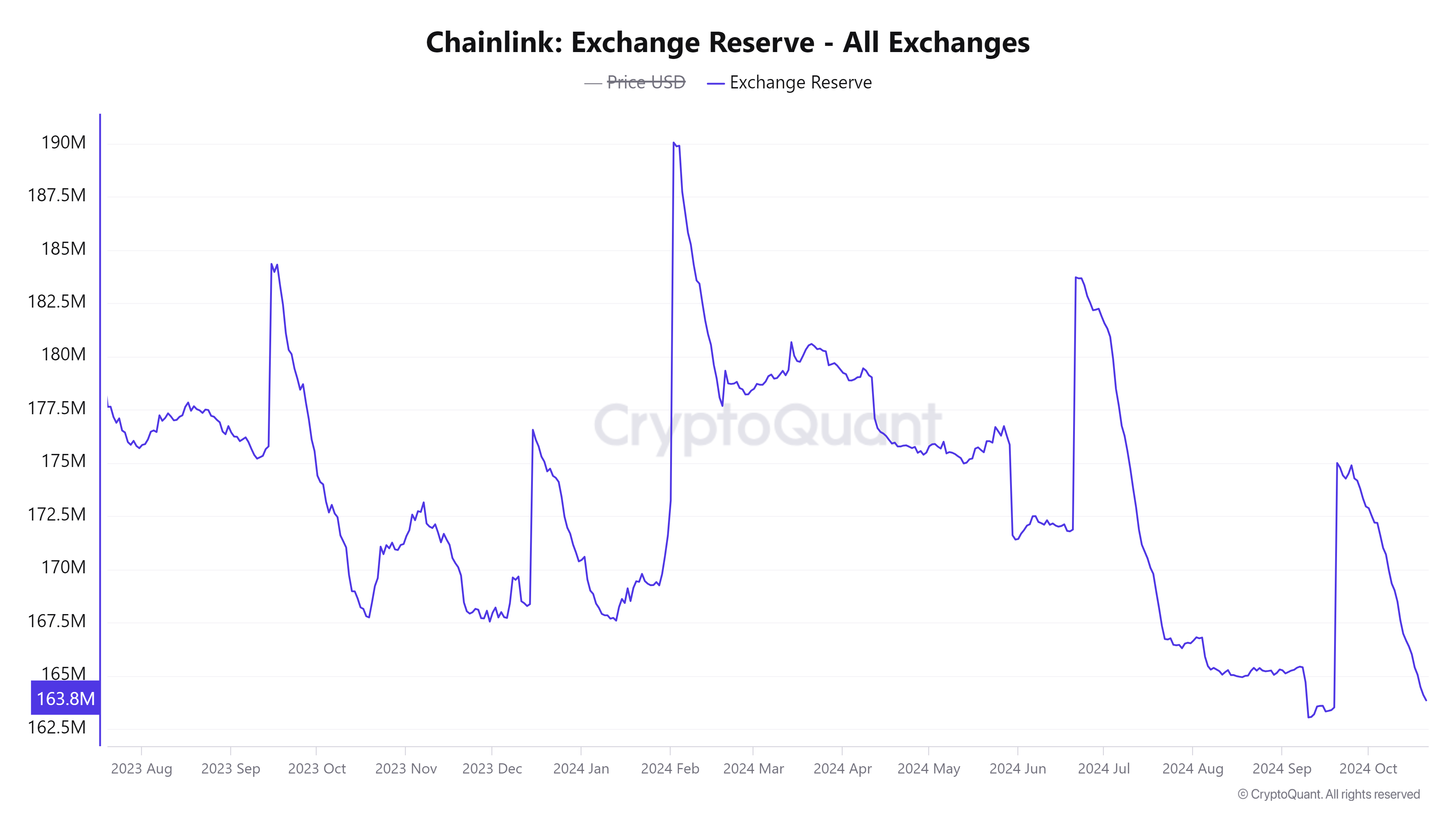 Interestingly, LINK’s exchange reserves decreased by 0.19%, standing at 163.8 million tokens at press time.