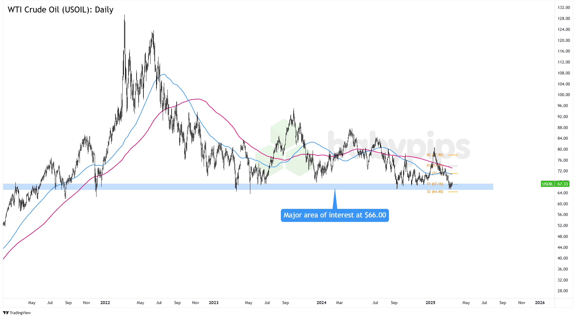 On the flip side, if crude extends its 2025 slide, a drop below $65.00 could open the door for a move toward its 2023 or 2021 lows, with potential support kicking in around $63.00 or $62.50.