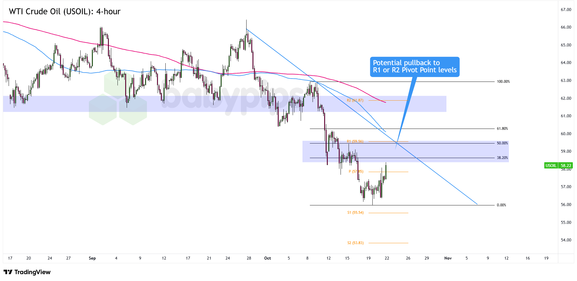 If the bulls keep pushing, crude could also make a move toward the $62.00 area, which ties in with the R2 Pivot Point near $61.87, the 200 SMA, and an old support level from August and September.