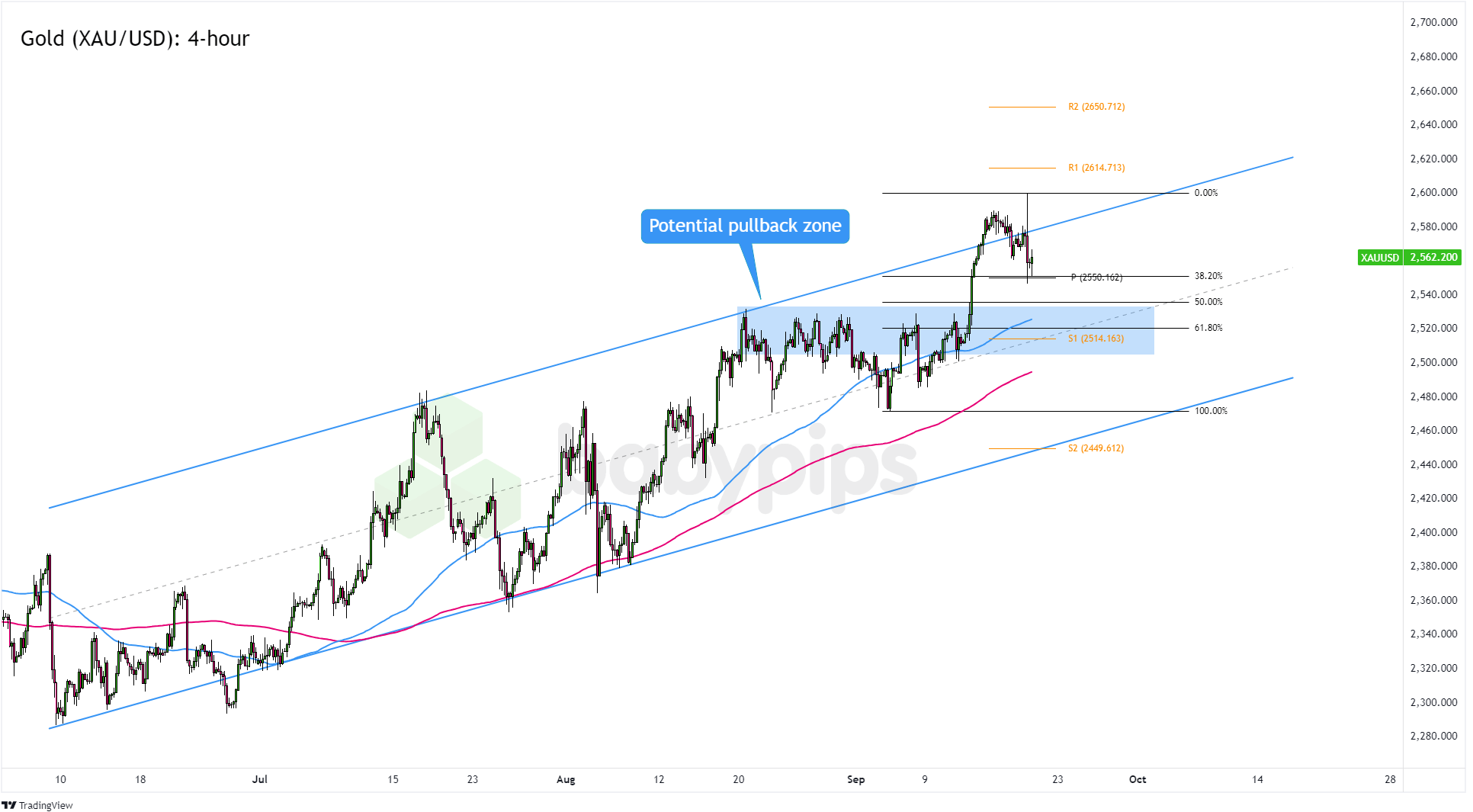 This is likely why the U.S. dollar remained resilient against its counterparts despite the rate cut. XAU/USD, which has been having a good September so far, jumped to a new record high of $2,600 before the bears stepped in.