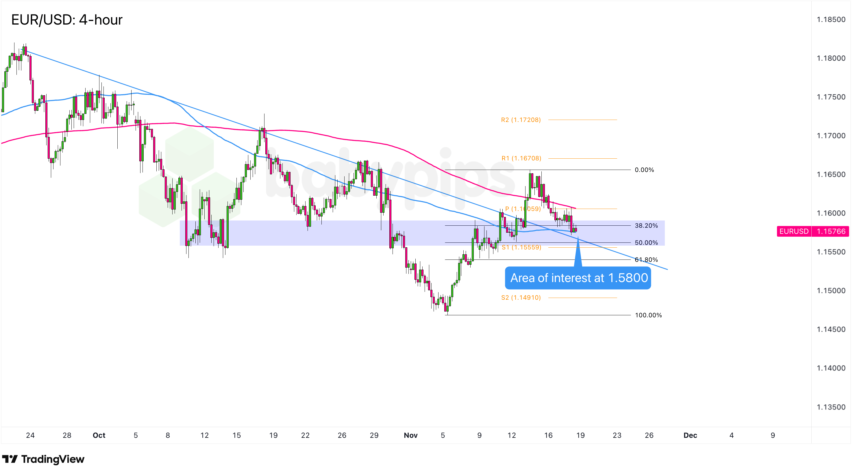 But if the pair keeps its bearish swing and breaks below 1.1550, sellers may guide it toward 1.1500 or even the 1.1450 November lows.