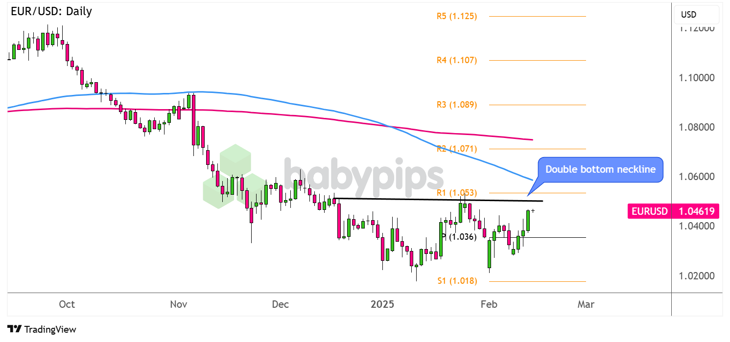 The dollar’s recent selloff is pulling the pair closer to the neckline of a classic reversal pattern on its daily chart!