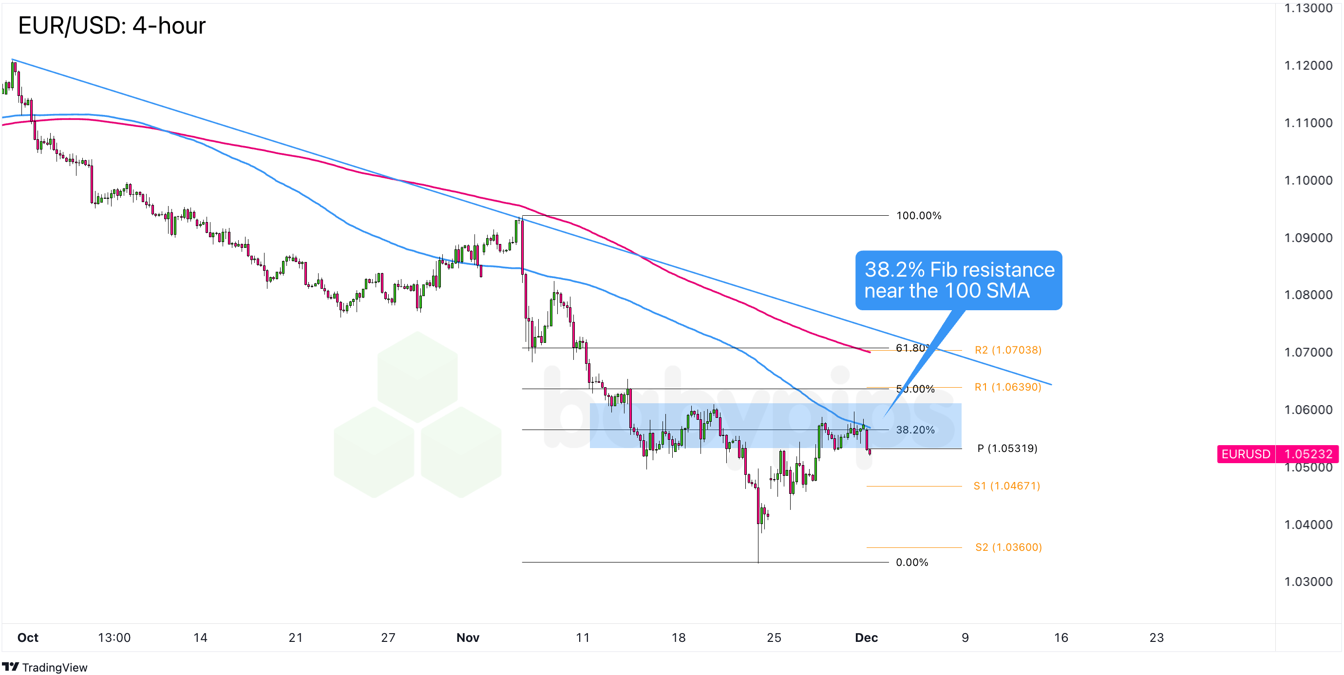 EUR bears look ready to pounce from EUR/USD’s current levels just above 1.0500 as it lines up with the 38.2% Fibonacci retracement of November’s downswing.
