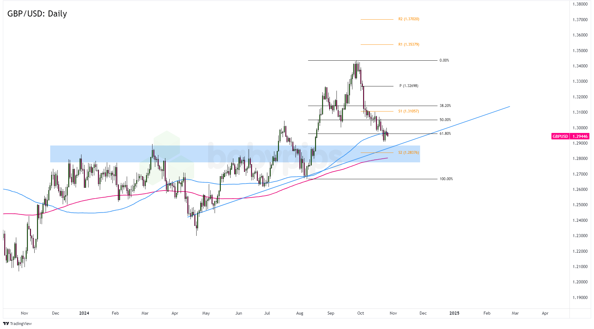 We’re taking a closer look at 1.2900, which is not far from the daily chart’s 100 SMA and a trend line support that’s been around since April.