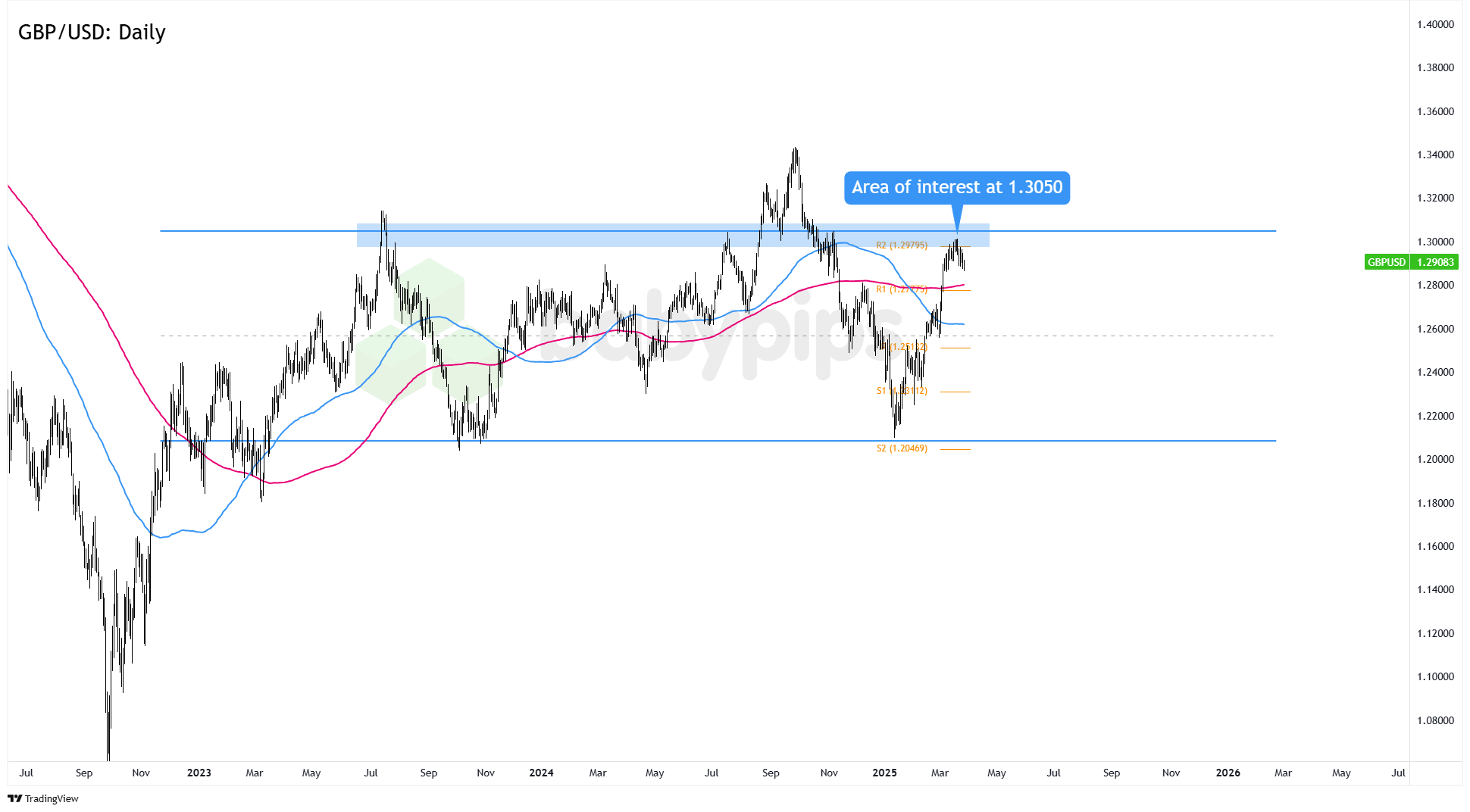 If bearish momentum builds under this consolidation zone, it could trigger more selling and drag GBP/USD down toward the 1.2800 area near the R1 Pivot Point at 1.2778 and the 200 SMA. And if things really go south, the pair could even slip toward the mid-range support near 1.2600.