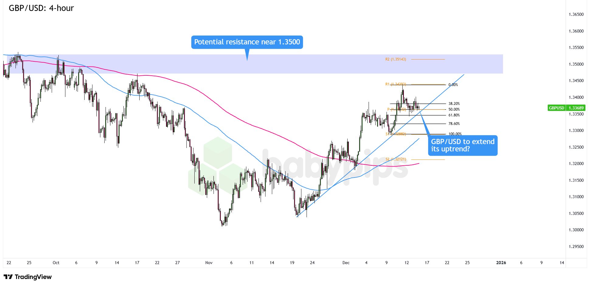 GBP/USD has been making higher highs and higher lows since bouncing off the 1.3050 psychological area in late November. That rebound set the tone for a steady uptrend that has stayed intact so far.