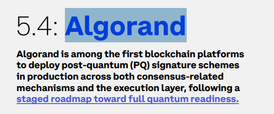 Coinbase’s position paper does not hand out praise lightly. In its section on major blockchains, it says Algorand is among the first blockchain platforms to deploy post-quantum signature schemes in production across both consensus-related mechanisms and the execution layer, following a staged roadmap toward full quantum readiness. The paper also notes that at the transaction and execution layers, Algorand already provides the cryptographic tools needed to support quantum-resistant accounts.