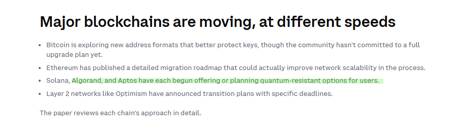 The headline here is not just that Coinbase mentioned Algorand. The real headline is that one of the biggest names in the industry has now publicly reinforced what a growing number of researchers are already saying: post-quantum preparation has started, and Algorand is one of the few blockchains already doing something concrete about it on mainnet.