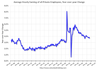 The graph shows the nominal year-over-year change in “Average Hourly Earnings” for all private employees from the Current Employment Statistics (CES).