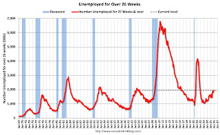 This graph shows the number of workers unemployed for 27 weeks or more.